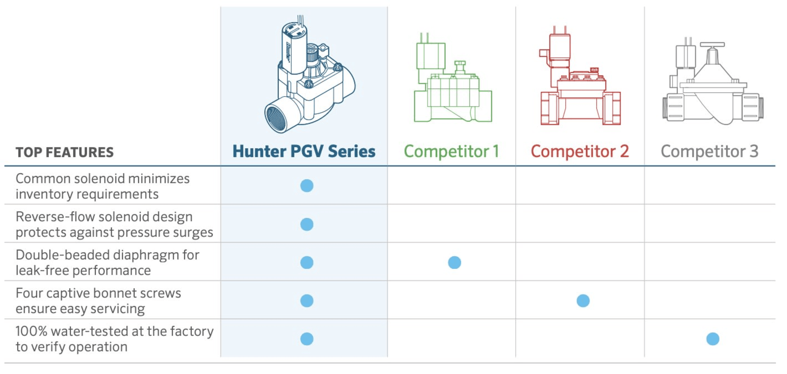 3. External and Internal Manual Bleed: Effortlessly maintain your system and keep the valve box dry with user-friendly manual bleed options. All Hunter irrigation valves include an internal manual bleed feature, ensuring a tidy, moisture-free valve box.