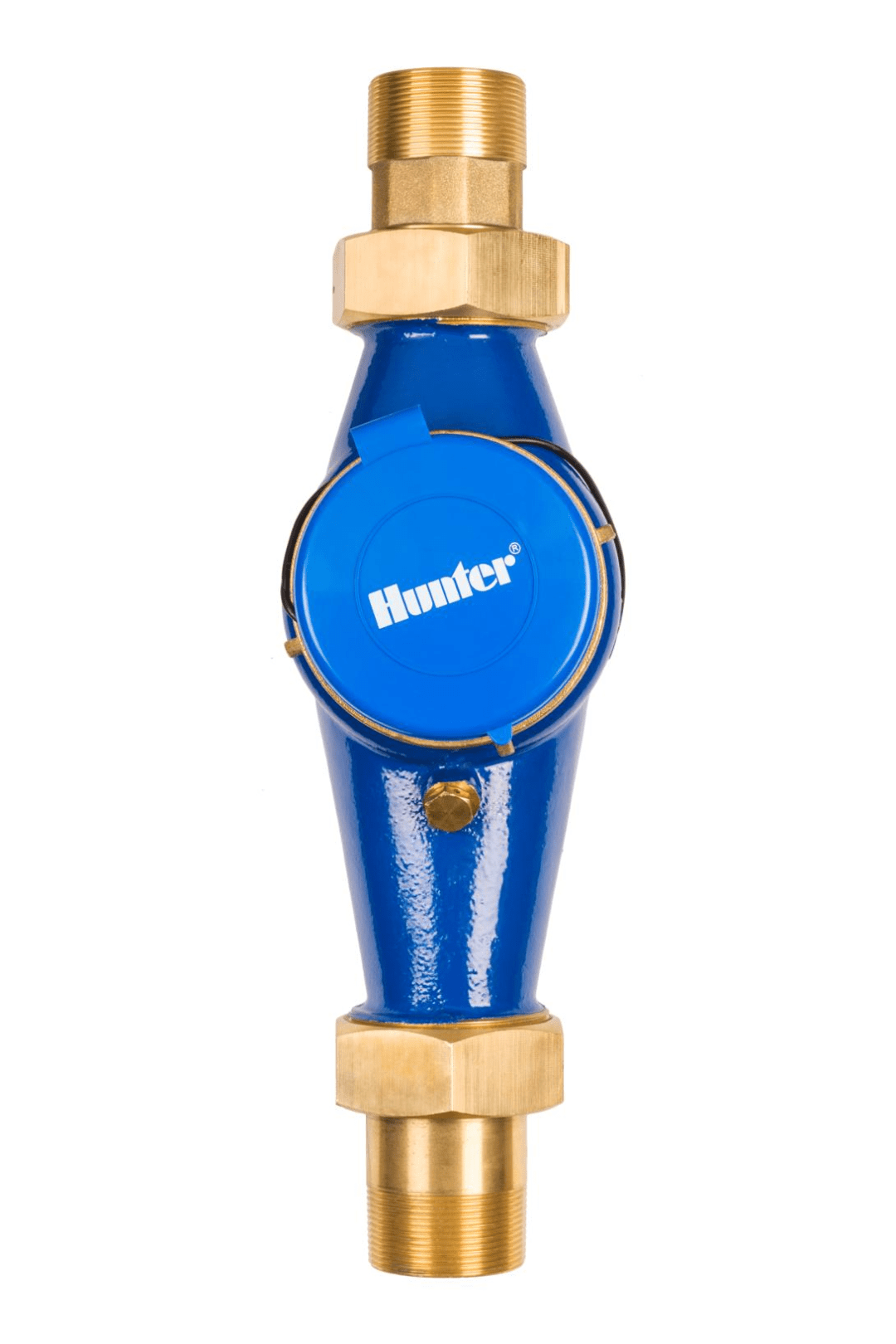 The HC Flow Meter is available in wired and wireless configurations, has four sizes available for ¾", 1", 1½", and 2" NPT threads, and features an analog dial displaying water usage in U.S. gallons.