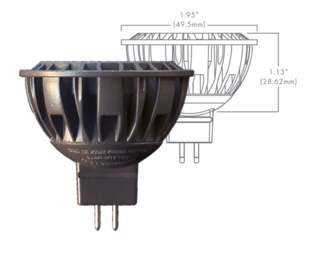 The Brilliance MR16 Bi-Pin is designed to fit in standard low voltage MR16 fixtures and offers a long lamp life. These LEDs are thermally engineered to operate in enclosed fixtures and provide added security by automatically cooling down and reducing lumen output when exposed to extreme heat, such as air temperatures above 125° F. There is no color shift when lumen output is reduced. Dimmable with Brilliance Dimmer and most magnetic transformers. Suitable for damp locations and for use in totally enclosed luminaires. Not for underwater use.